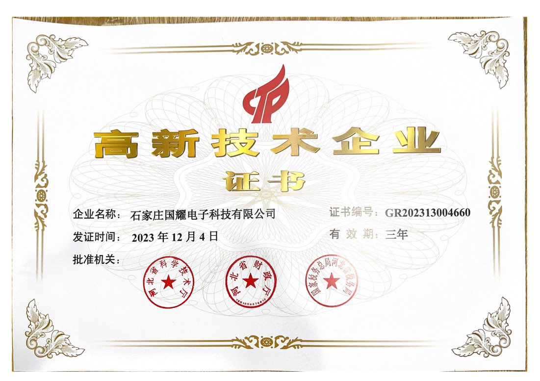 石家莊國耀電子科技有限公司成立于1998年,注冊(cè)資本1000萬元,位于石家莊市高新技術(shù)產(chǎn)業(yè)開發(fā)區(qū),是國家高新技術(shù)企業(yè)和軟件企業(yè)。